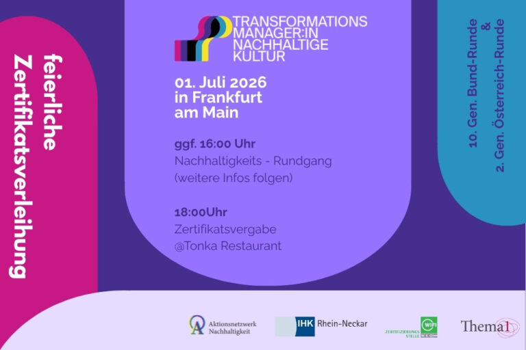 Mit dem erfolgreichen Abschluss der 9. Bund-Runde der Weiterbildung „Transformationsmanager:in Nachhaltige Kultur“ haben wir der neuen Generation…