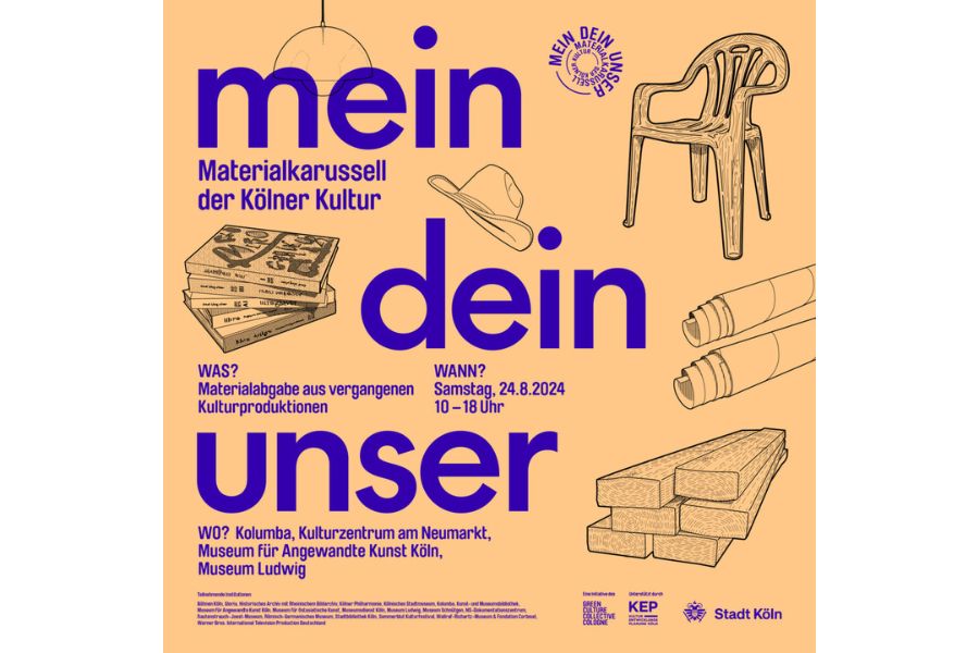 Wie wird aus Klimaschutz ein Mehr an Kreativität und Beisammensein? Dass Ressourcenschonen auch Spaß machen kann, will das Materialkarussell der Kölner Kultur zeigen, eine Initiative des Green Culture Collective Cologne (GCCC). Am Samstag, 24. August 2024 verwandeln sich darum vier renommierte Kulturinstitutionen in Orte des Austauschs und der Wiederverwertung. Unter dem Motto „mein, dein, unser“ können […]