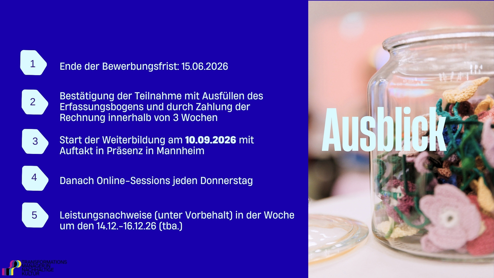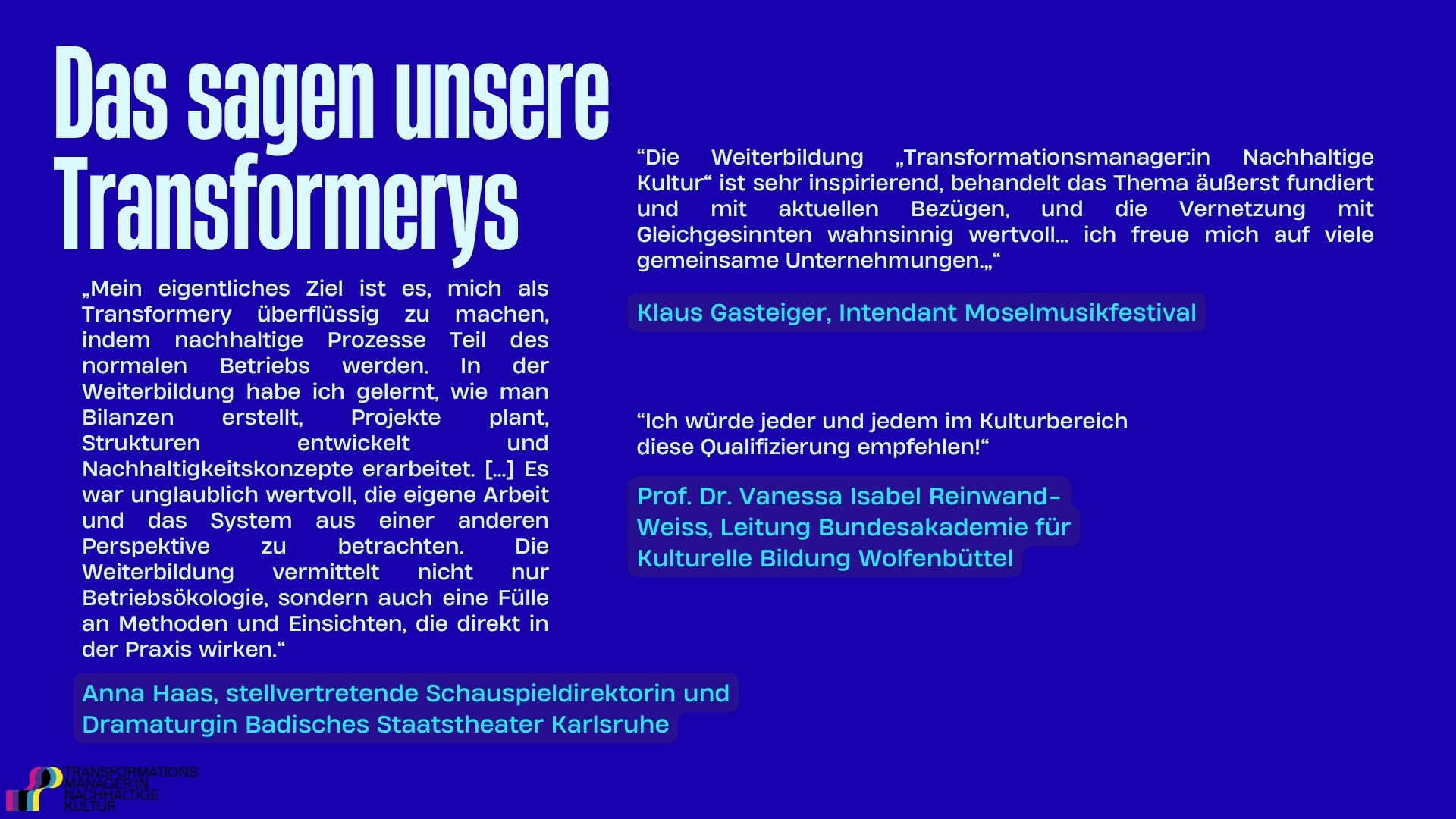 Es ist wieder soweit, bewerben Sie sich für die kommende bundesweite Weiterbildungsrunde „Transformationsmanager:in Nachhaltige Kultur“ in der 11. Generation!