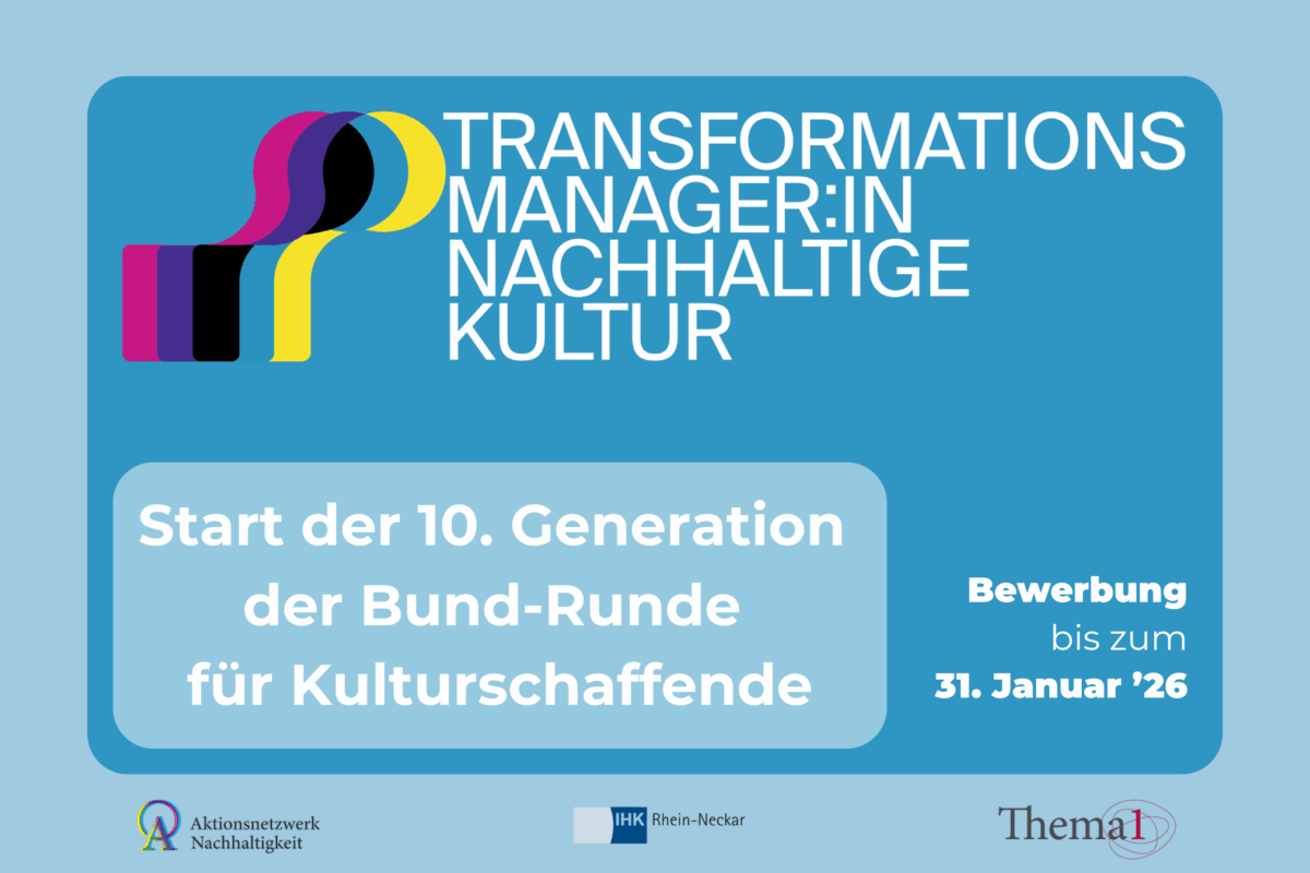 Frühjahr 2026: Neue Weiterbildungsrunden starten! Wir freuen uns, Dir mitteilen zu können, dass im Frühjahr 2026 die 10. Generation unserer IHK-zertifizierten Bund-Runde der Weiterbildung „Transformationsmanager:in Nachhaltige Kultur“ startet! Wir sind zwar noch in unserer laufenden Pilotrunde in Österreich, doch wir freuen uns sehr verkünden zu können, dass im Frühjahr 2026 bereits die 2. Generation der Österreich-Runde starten wird! Mit einem […]