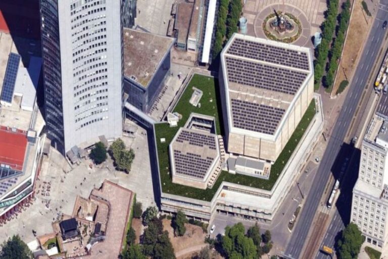 Solaranlage und Gründach auf dem Gewandhaus zu Leipzig