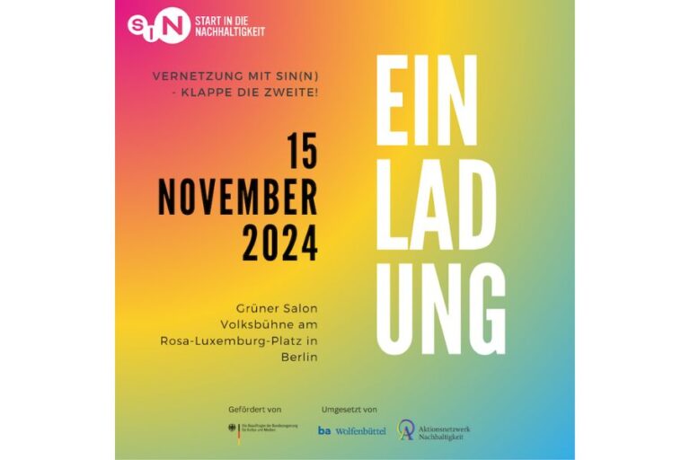 Wir möchten den Abschluss des bundesweiten Pilotprogramms SIN-Start in die Nachhaltigkeit, gefördert durch die Beauftragte der Bundesregierung für Kultur und…