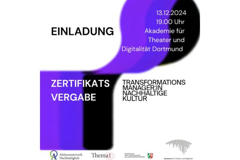 Liebes Netzwerk, hiermit laden wir Sie herzlich zur Zertifikatsvergabe und Netzwerkevent am 13.12.2024 in der Akademie für Theater und Digitalität…